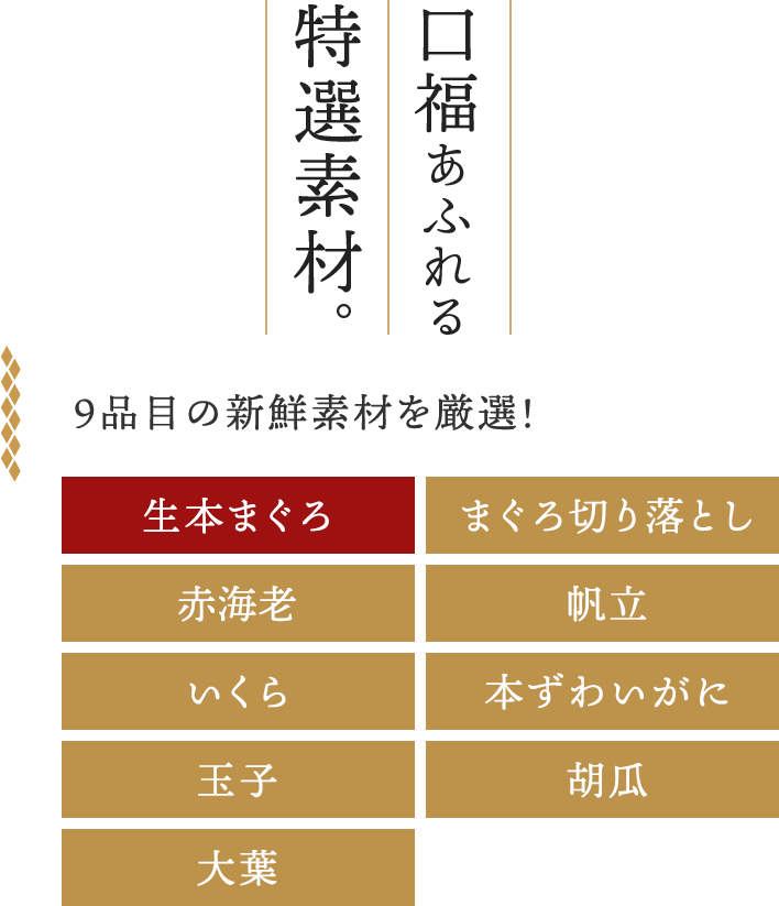数あるまぐろの中でも、特に脂のノリが良いと言われているのが「本まぐろ」。濃厚な旨味はもちろん、とろけるような味わいと「生」ならではの食感が味わえます。