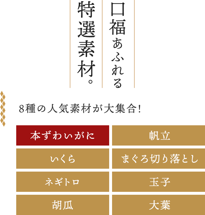 繊細な身質、みずみずしい甘さ、ふわりとほどける口どけ。本ずわいがには、蟹の中でも特に上品な味わいで知られます。厳しい海で育った身の締まりと濃厚な旨みを存分にお楽しみください。