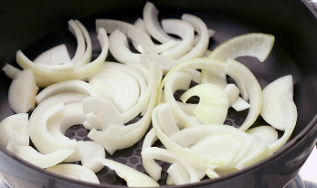 材料をカットします。スパムとソーセージは食べやすい大きさに、たまねぎは繊維を断ち切る方向で薄切りにします。また、しいたけは石突きを取り、ひとくち大に切ります。
