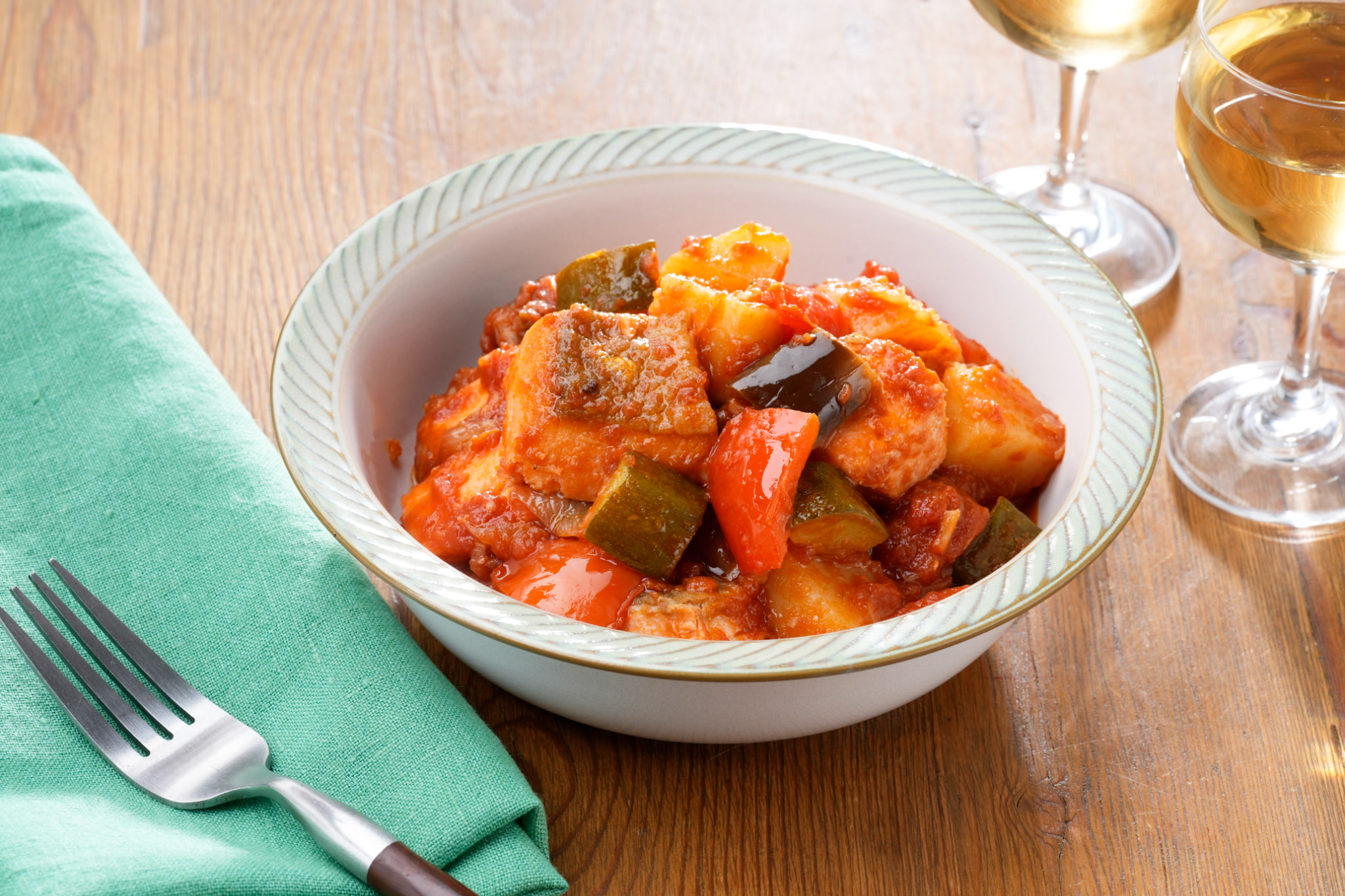 野菜たっぷりな簡単レシピ! 「秋鮭のラタトゥイユ」のレシピをご紹介します。