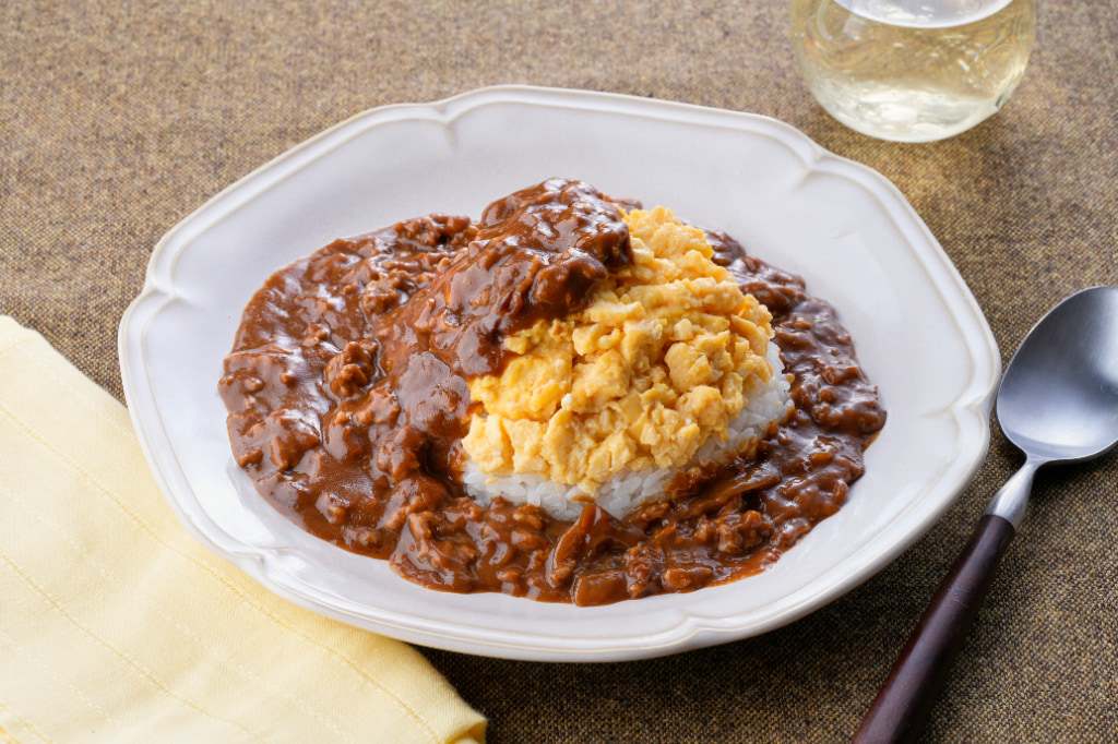 電子レンジで簡単! 合挽肉とレトルトハヤシを使った時短レシピ「レンチンオムハヤシ」をご紹介します。