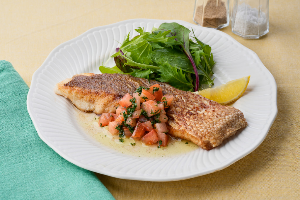 フライパンで簡単調理! バターとオリーブオイルで香ばしく焼く「真鯛のムニエル」のレシピをご紹介します。