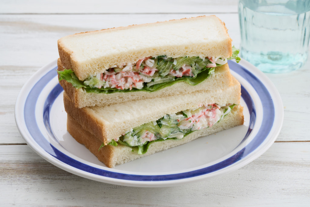 カニかまを使ってサンドイッチ風! 「カニかまパンサラダ」のレシピをご紹介します。