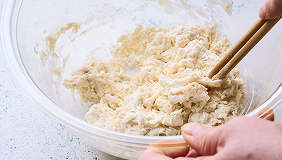 ぽろぽろと生地がまとまってきたら、手で生地をまとめます。