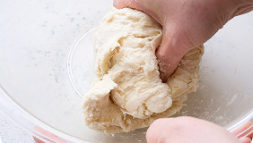 生地を台の上に取り出し、生地の表面が滑らかになるまでこねます。