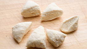 こねた生地を6等分し、それぞれボール状に丸めます。
