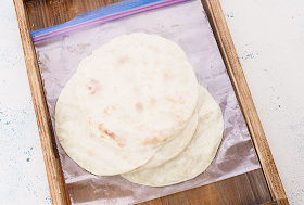 トルティーヤは乾燥すると巻きにくくなるため、温かいうちに保存袋などに入れ、しっとり感をキープしましょう。乾燥すると風味も落ちるので、できるだけ早めに食べるのがおすすめです。