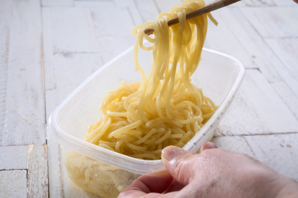 - 2 ①にシロップと炭酸水を入れ、軽く混ぜます。